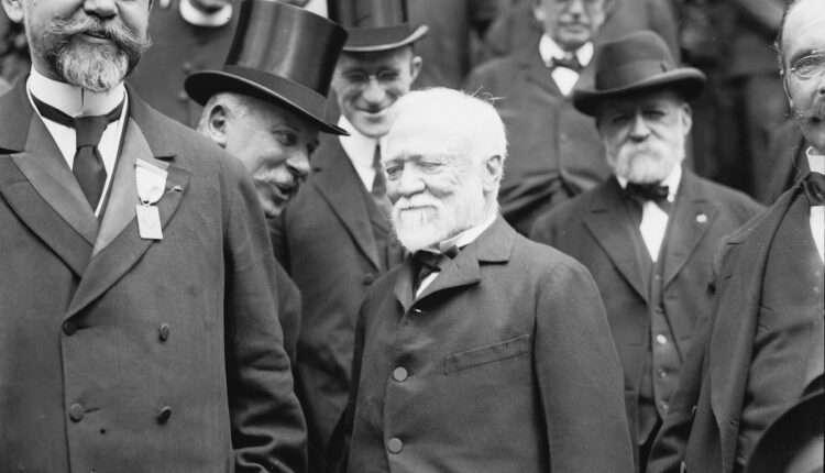 Sua primeira doação foi realizada em sua terra natal, Dunfermline. Ajudou a construir 2800 bibliotecas nos Estados Unidos, museus, salas de concerto, montou fundações, fez doações para instituições de educação, construiu o famoso Carnegie Hall e o Palácio da Paz em Haia.